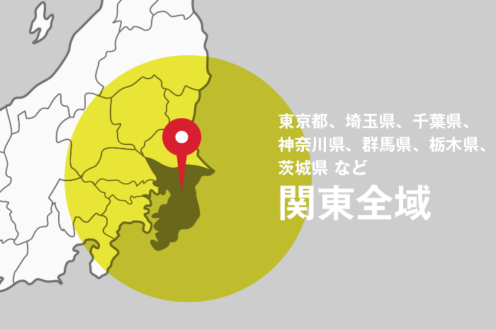 千葉県習志野市を拠点に東京都、埼玉県、千葉県、神奈川県、群馬県、栃木県、茨城県など関東全域で対応しています。